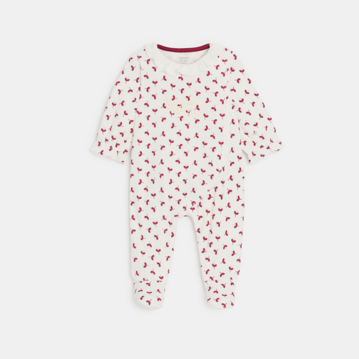 وصفي من الضروري أن تقتني الصغيرات هذه البيجاما المخملية المريح منذ الأيام الأولى. تصميم بأزرار ضغط متقاطعة من الأمام لكي ترتديها الصغيرات بسهولة وهن مستلقيات على الظهر. ياقة صغيرة، وأساور مكشكشة وبها نقوش متناسقة مع تشكيلة أوبيبي للفتيات.