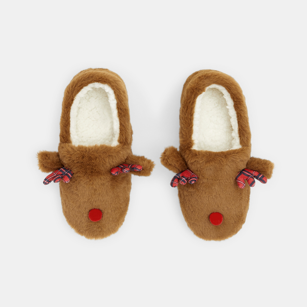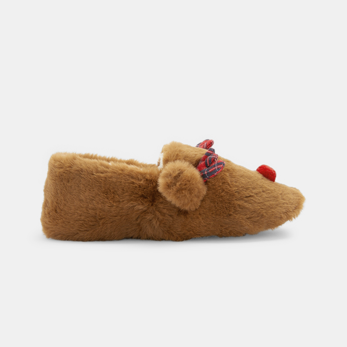 حذاء خفيف بدون نعل من فرو الرنة الصناعي للأولاد