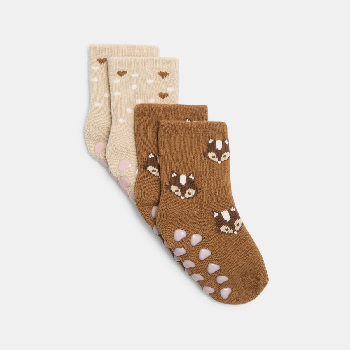 جوارب مضادة للانزلاق (مجموعة من 2) طفلة باللون البيج