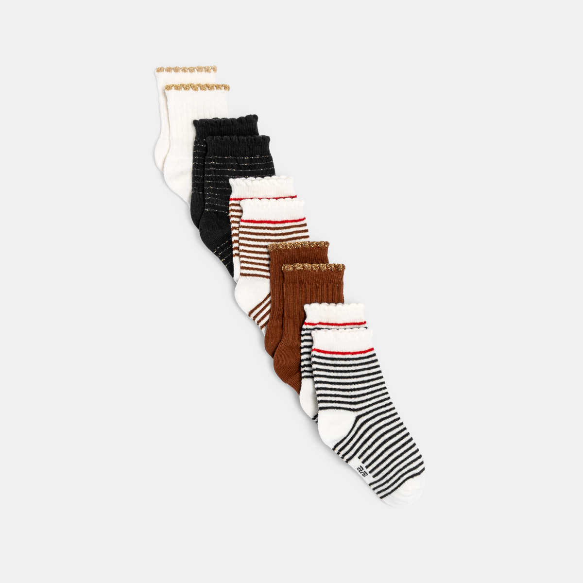 جوارب مخططة لامعة للفتيات الصغيرات بحواف صدفية (عبوة من 5 قطع)