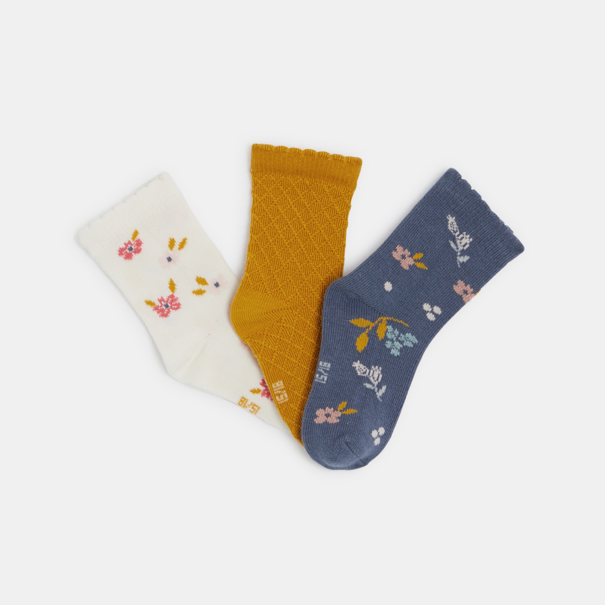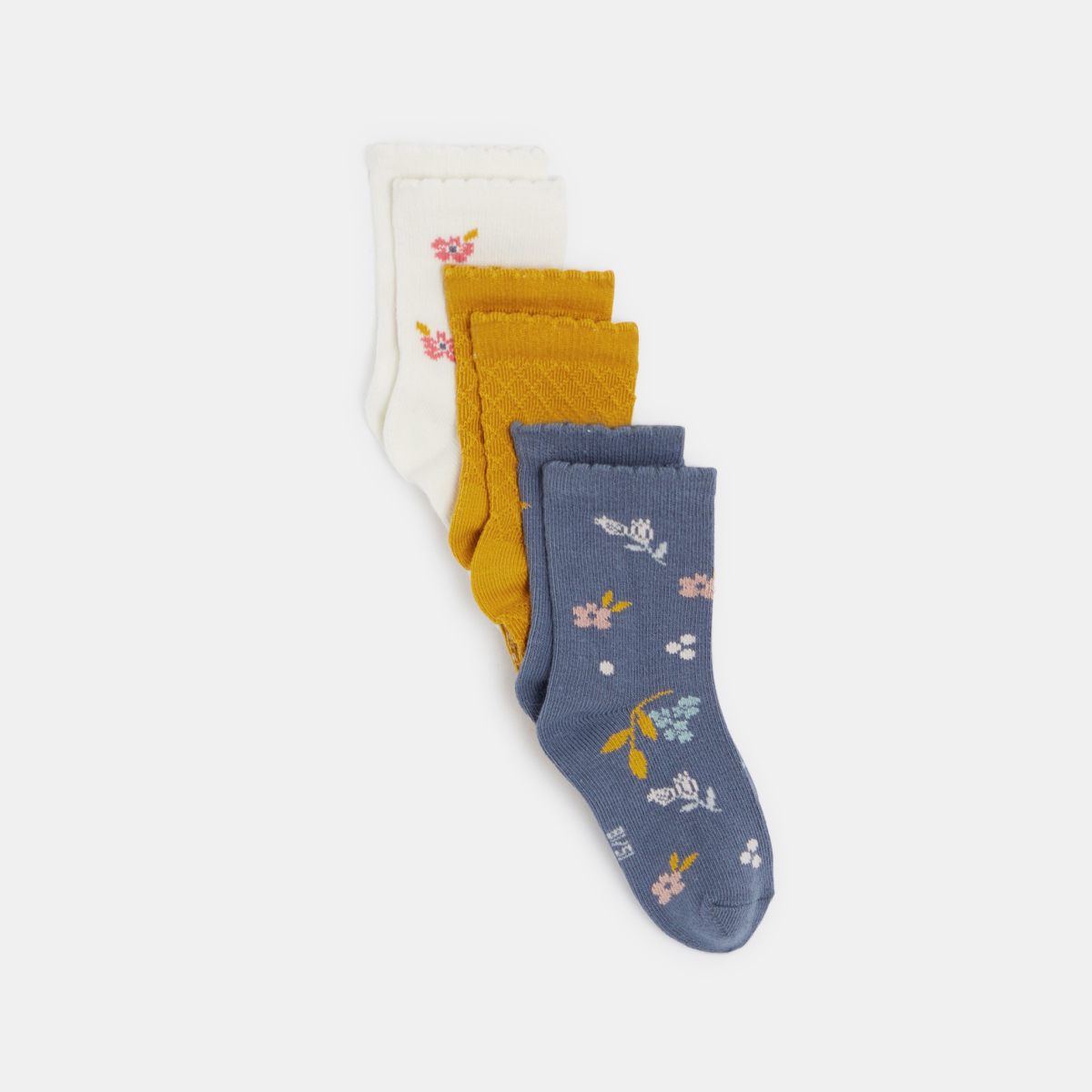 جوارب باللون الأصفر، بنقشة الزهور، للفتيات الرُضع (العبوة 5 أزواج)