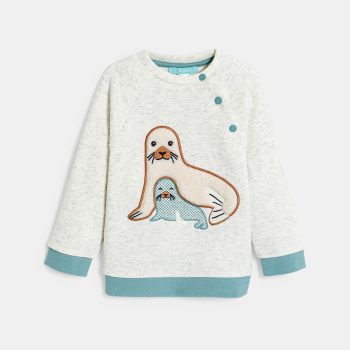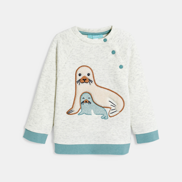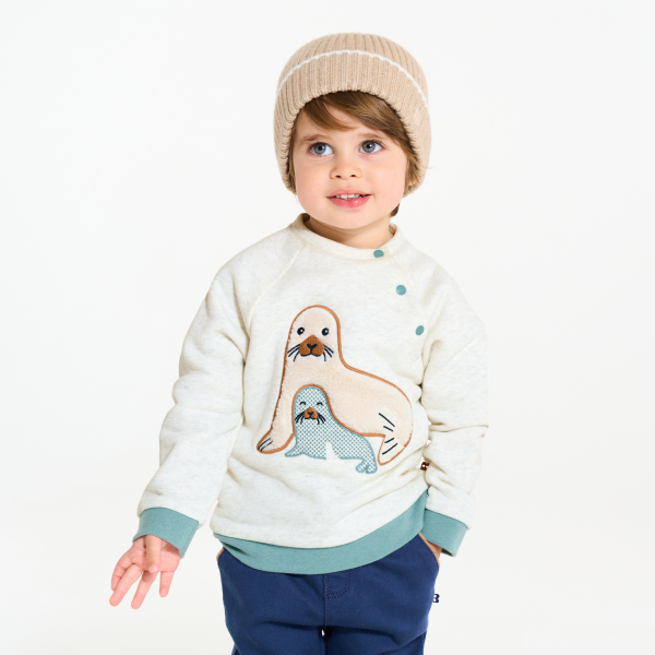 وصفي الشتاء على الأبواب وجمعينا يحب التغطية الجيدة، لا سيما مع هذا السويت ذي الرسوم المرحة! تفتح هذه السترة الصوفية الناعمة والجيد التدفئة بأزرار كبس على الجانب لتسهيل عملية الارتداء. لمسات نهائية مع حواف مضلعة.