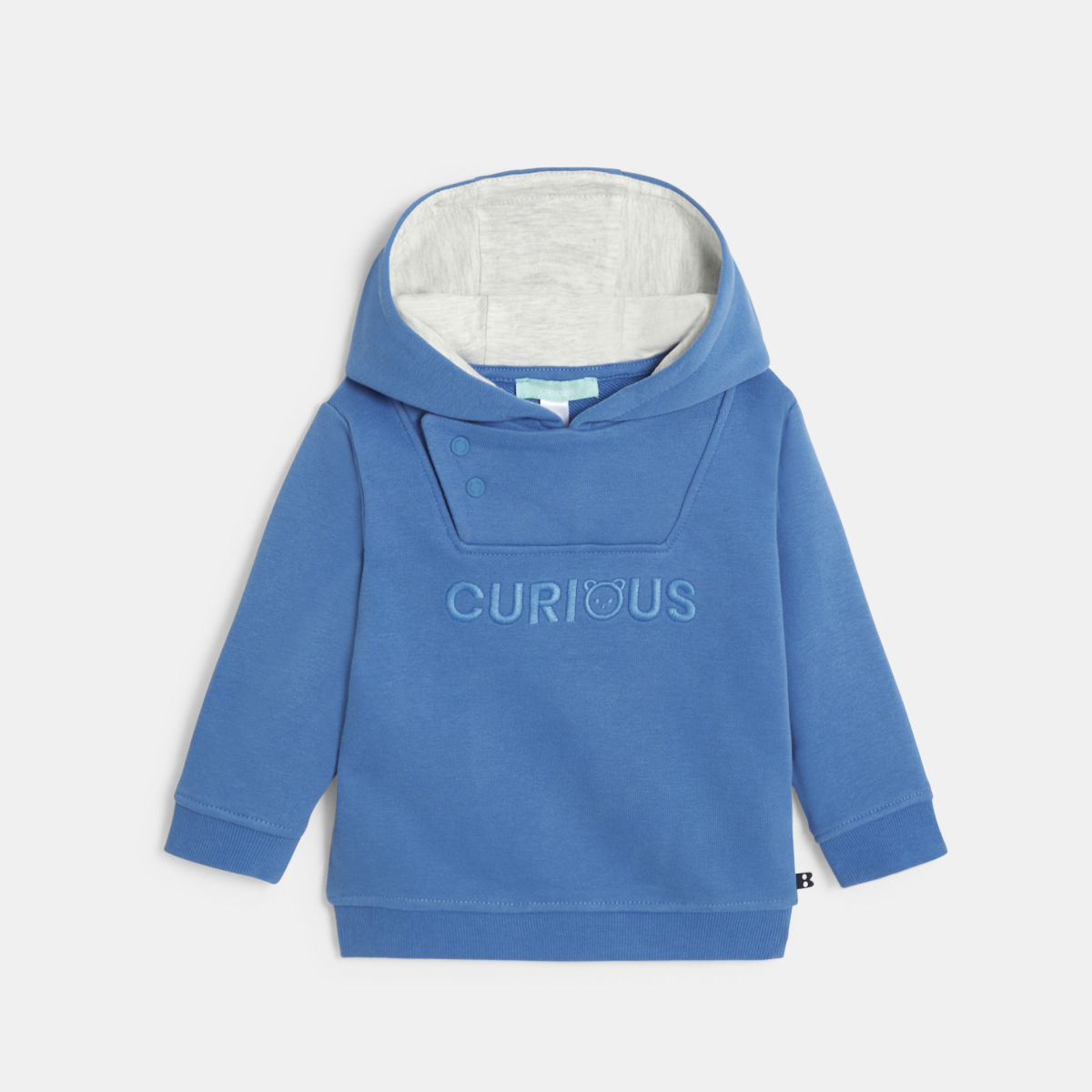 سويت شيرت من الصوف الناعم باللون الأزرق، مع قلنسوة وسحّاب، للفتيان الصغار