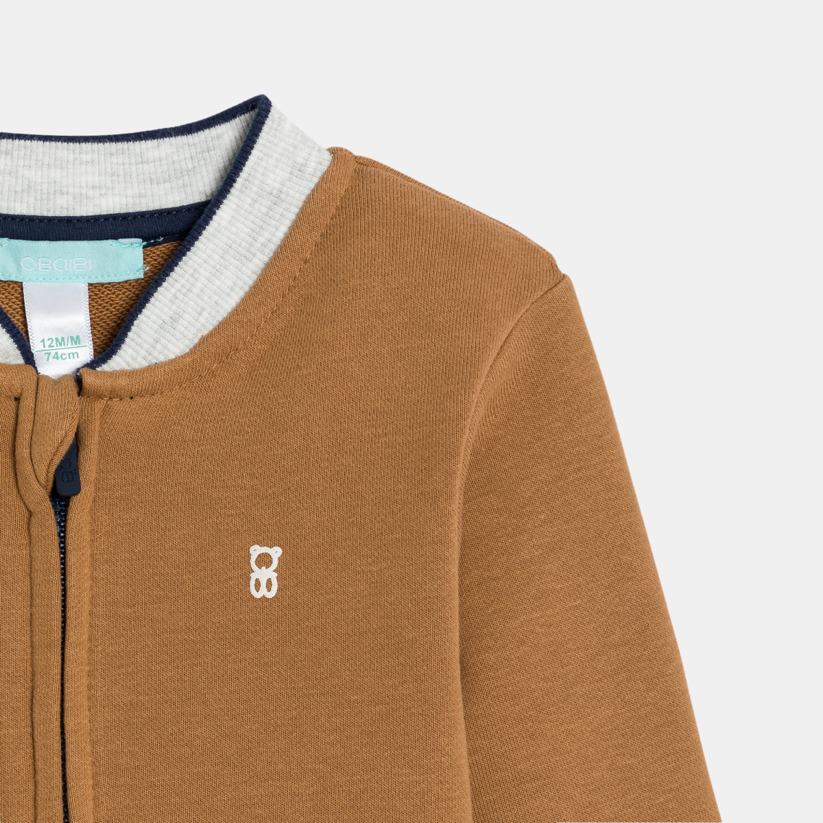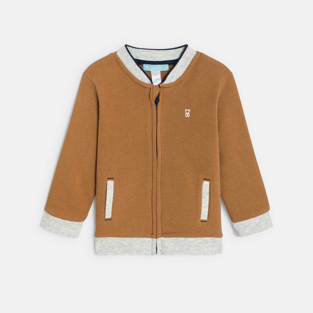 جاكيت من طراز تيدي بسحاب، من الصوف الناعم، باللون البني للفتيان الصغار