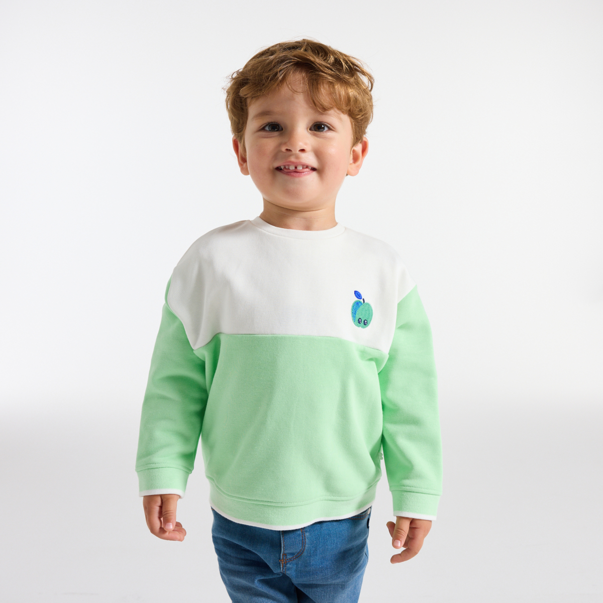 سويت شيرت ذو لونين مرسوم عليه طائر الطوقان أخضر، للطفل الرضيع
