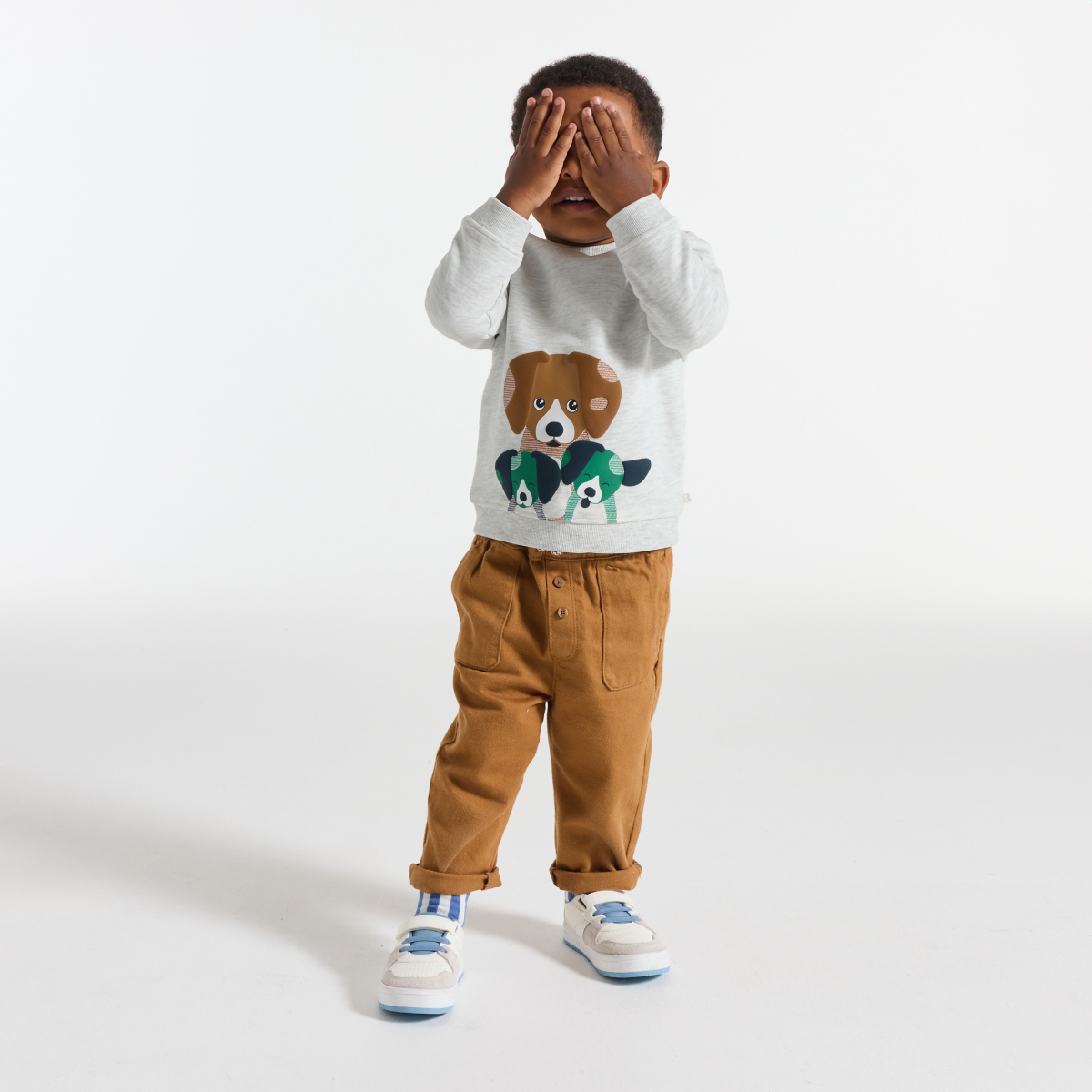 سويت شيرت ميلتون رمادي اللون مرسوم عليه كلب، للصبي الصغير