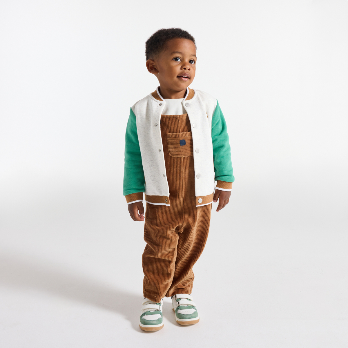 لنمرح معًا! مع هذه الرسالة المبهجة، بات الأمر واضحًا! نحن نحب روح الدبدوب التيدي في هذه السترة الصوفية الناعمة. ثنائية اللون بأكمام طويلة مع تشطيب بحواف مضلعة وإغلاق بأزرار ضغط لسهولة ارتداء الصغار لملابسهم.