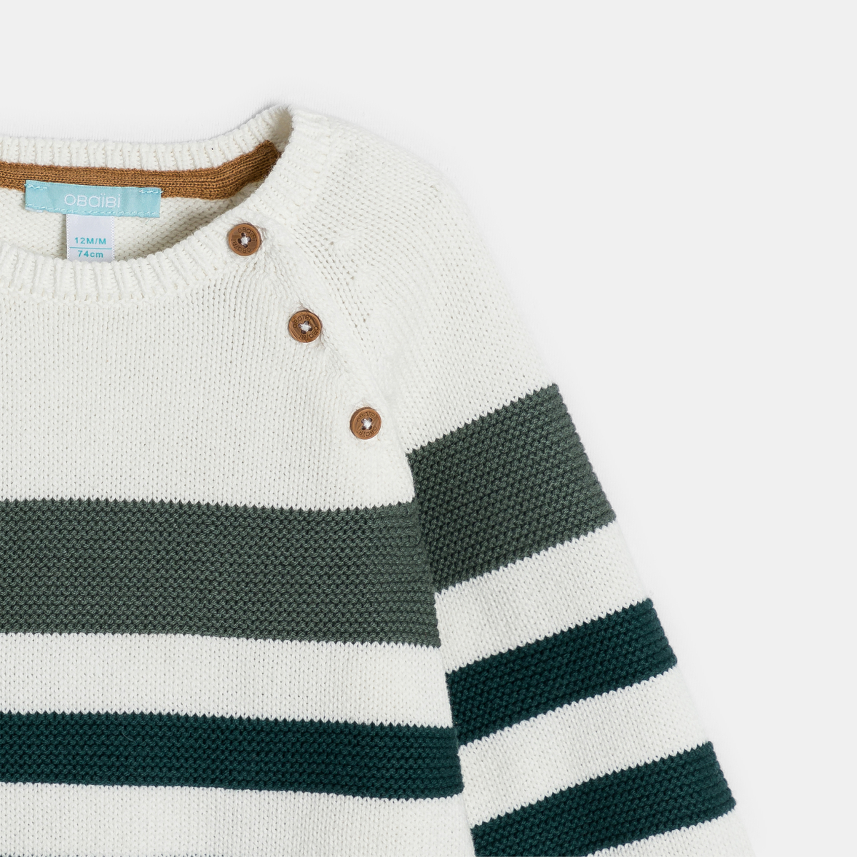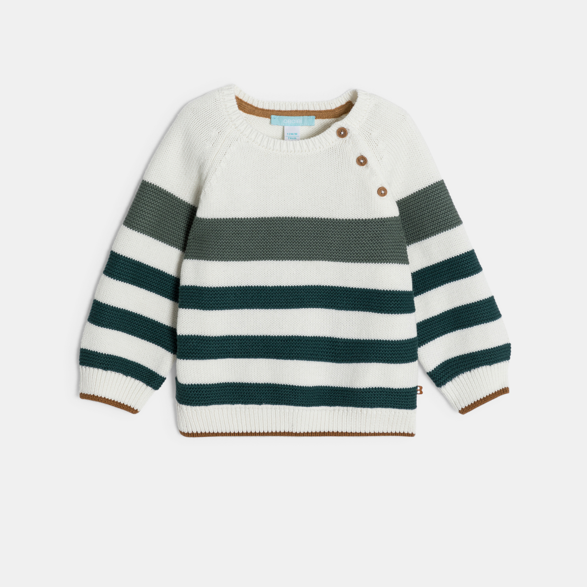 كنزة مُخططة منسوجة بالتريكو، باللون الأخضر للصبيان الصغار.