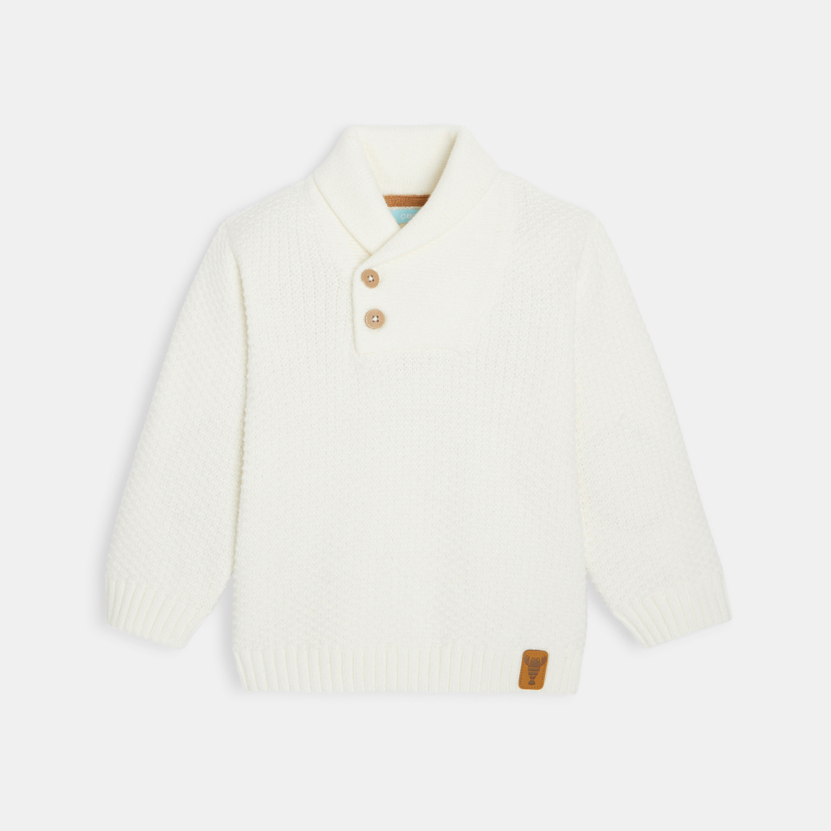 سترة بيضاء بأزرار وياقة شال للأولاد الصغار