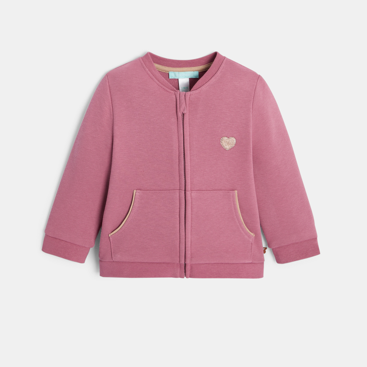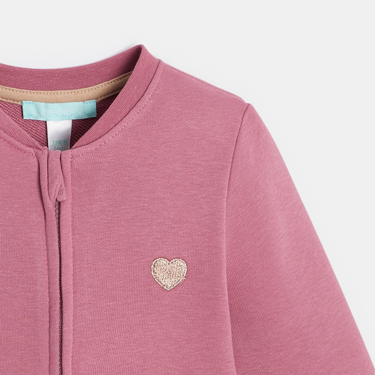 كنزة (سترة) من الميلتون، باللون الوردي، بسحّاب ورقعة مخيطة على شكل قلب وردي اللون للفتيات الرُضع
