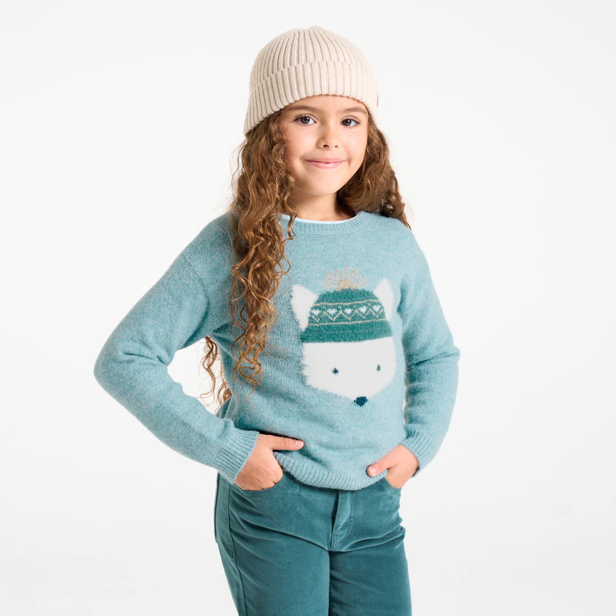 نظرة عن قرب على نقش الجاكار المعزز بتفاصيل قزحية الألوان! لقد وقعت الفتيات في حب هذه السترة الناعمة والمنفوشة. قماش ناعم. قصة ضيقة قليلًا عند الحاشية. ياقة مستديرة. فتحات الذراعين منسدلة. أكمام طويلة. حاشية مستقيمة. حواف مطرزة.