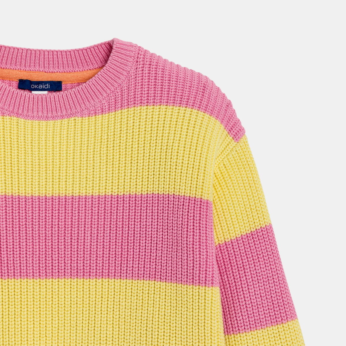 الخطوط العريضة بلونين تضفي جاذبية وروعة على مظهر الفتيات ! نسيج مضلع ومحيك بأسلوب إنجليزي، ناعم ومرن. قَصَّة نوعًا ما ضيقة عند الحاشية السفلية. ياقة مستديرة. أكتاف الأكمام منسدلة. أكمام طويلة. الحافة السفلية مستقيمة. حواف مضلعة.