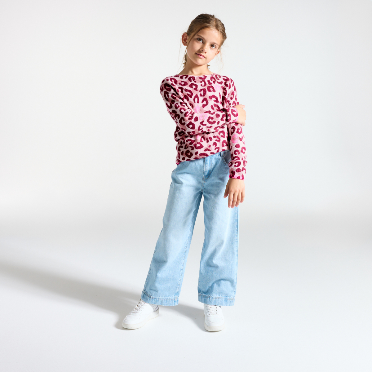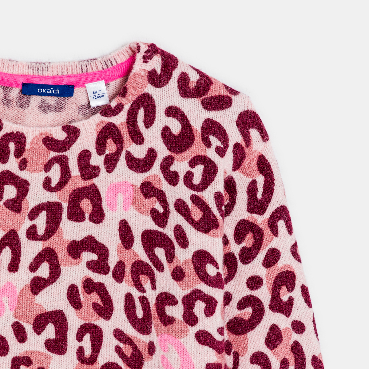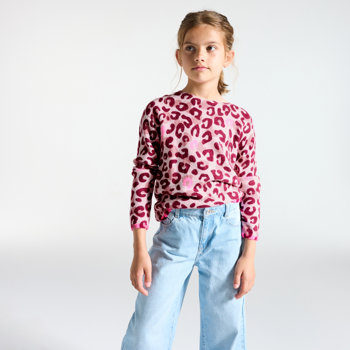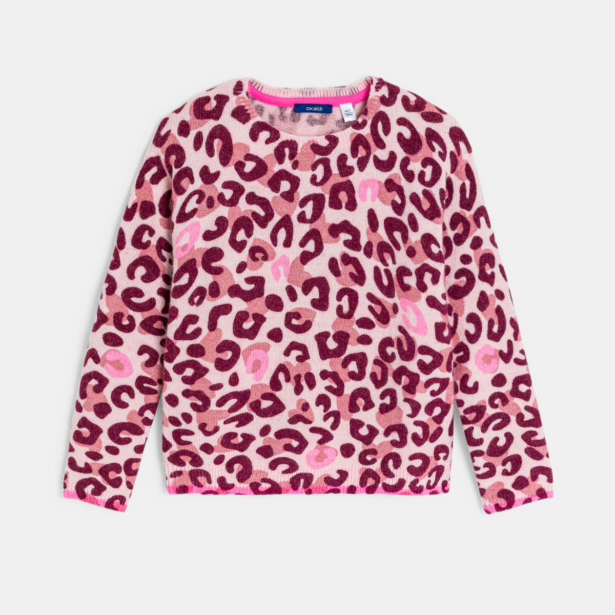 بلوفر مطبوع عليه صورة فهد، وردي اللون، للفتيات