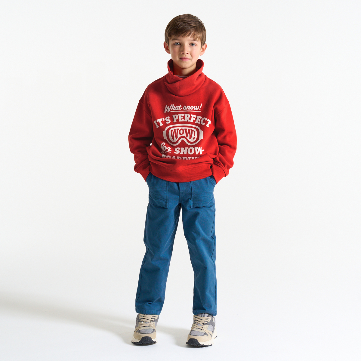 هذا السويت شيرت الذي به ياقة سنود ورسالة إيجابية يوجد على قمة ما يفضله الأولاد. قصة ضيقة قليلًا عند الحاشية. ياقة عالية متقاطعة. نقش مطبّع بالحبر النافر من الأمام. فتحات الذراعين منسدلة. أكمام طويلة. حاشية مستقيمة. حواف مضلعة.