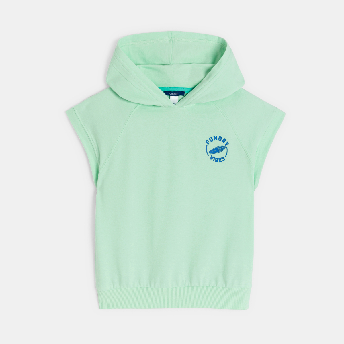 سويت شيرت بغطاء للرأس وأكمام قصيرة أخضر اللون للأولاد