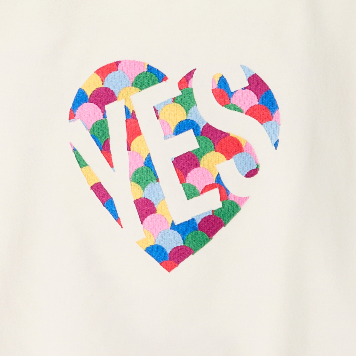 وصفي من المستحيل عدم إعجاب الفتيات بمثل هذا السويت شيرت المزود بغطأء للرأس، والذي يجمع بين الراحة والأناقة. مصنوع من نسيج الميلتون الناعم، ويحمل رسمة لكلمة "YES" على شكل قلب. أكمامه الطويلة وتصميمه الكلاسيكي يجعلان منه خياراً مثالياً للحياة اليومية. الحافَة السفلية وأساور الأكمام مطاطية ومرنة. سهل ارتداءه ومناسب جدًا عند الرغبة في الخروج من أجل اللعب والاسترخاء.