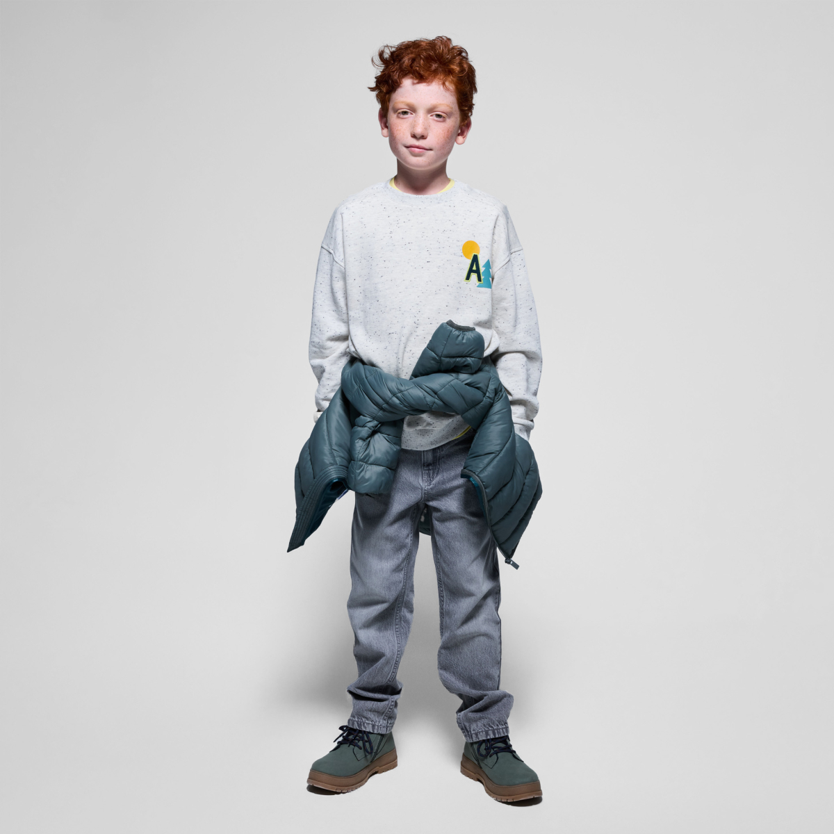 وصفي يحتل الجبل مكان الصدارة في المجموعة. يركز الأولاد على النقش المطرز على الصدر والتأثير المرقط للصوف الناعم. قَصَّة نوعًا ما ضيقة عند الحاشية السفلية. ياقة مستديرة. أكمام طويلة وأساور مضلعة. الحافة السفلية مستقيمة مضلعة.