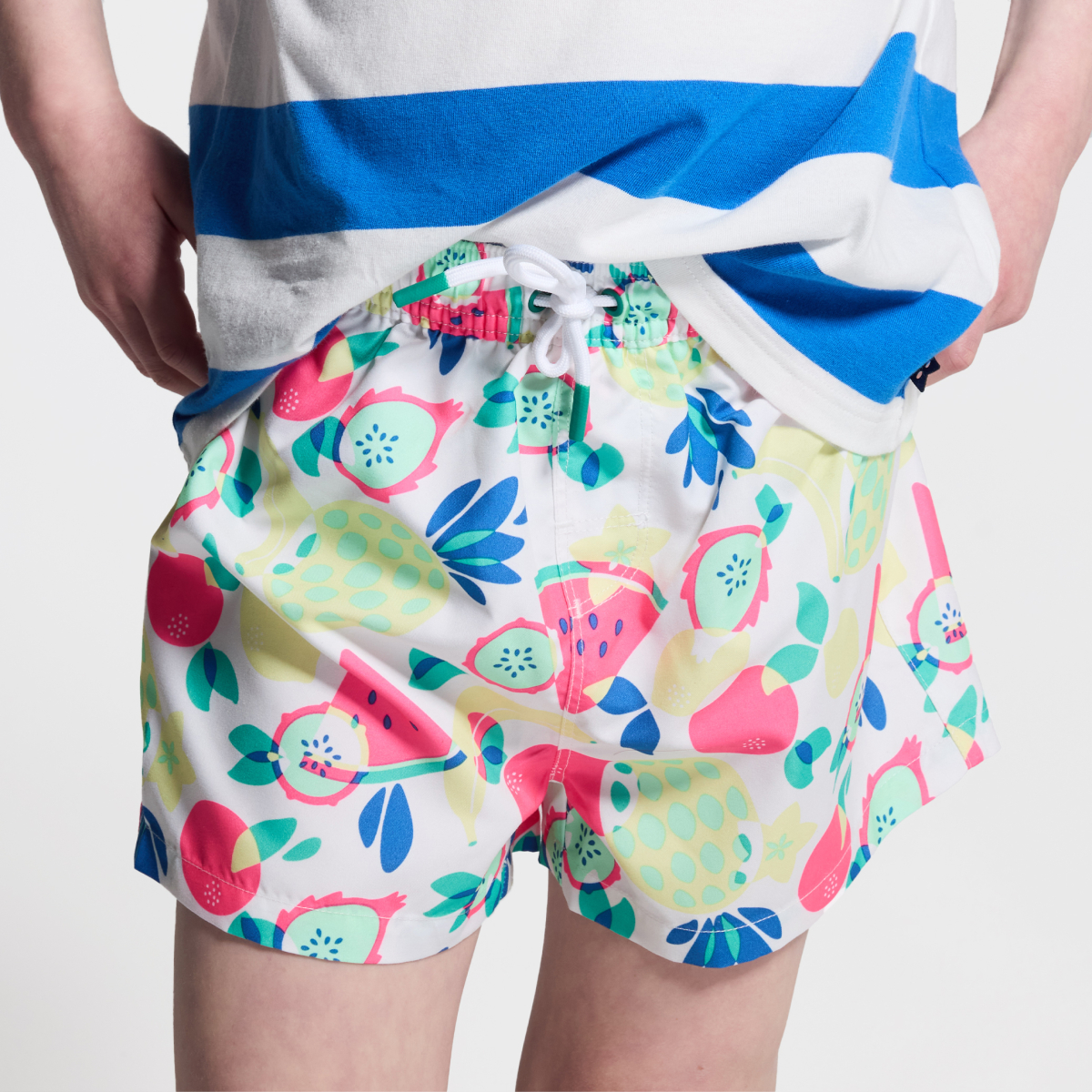 وصفي ألوان مفعمة بالحيوية وروح منتعشة: يمكن للأولاد الاستمتاع برياضات التزحلق ورياضيات الشاطئ في شورت السباحة المبهج! قماش مصمم للاستحمام وسريع الجفاف. يمكن ضبط الخصر المطاطي عن طريق رباط يتم شده. سروال داخلي من نسيج شبكي. يتم شطفه بالماء النظيف بعد الاستخدام.