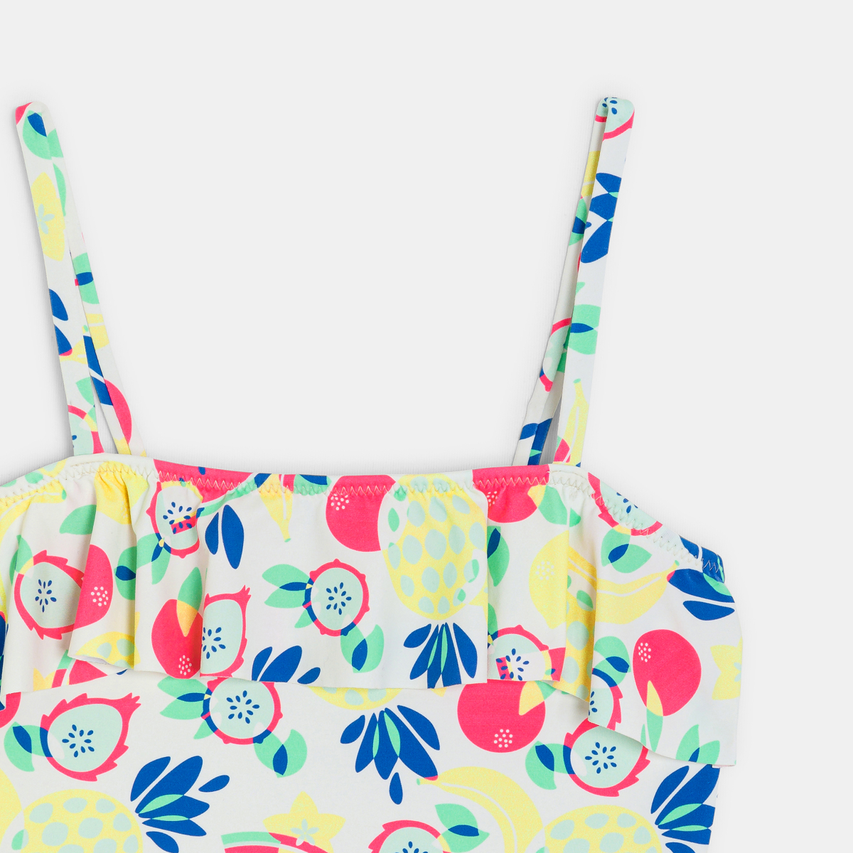 وصفي المحيط أو البحيرة الجبلية أو النهر البارد أو حمام السباحة... يتخذ شورت السباحة هذا المكون من قطعة واحدة ألوان الفواكه. تحب الفتيات الكشكشة على خط العنق. قماش قابل للتمدد مبطن مصمم للاستحمام. أشرطة كتف رفيعة. خط العنق والساقان بهم شريط مطاطي. يُشطف بالماء النظيف بعد السباحة.
