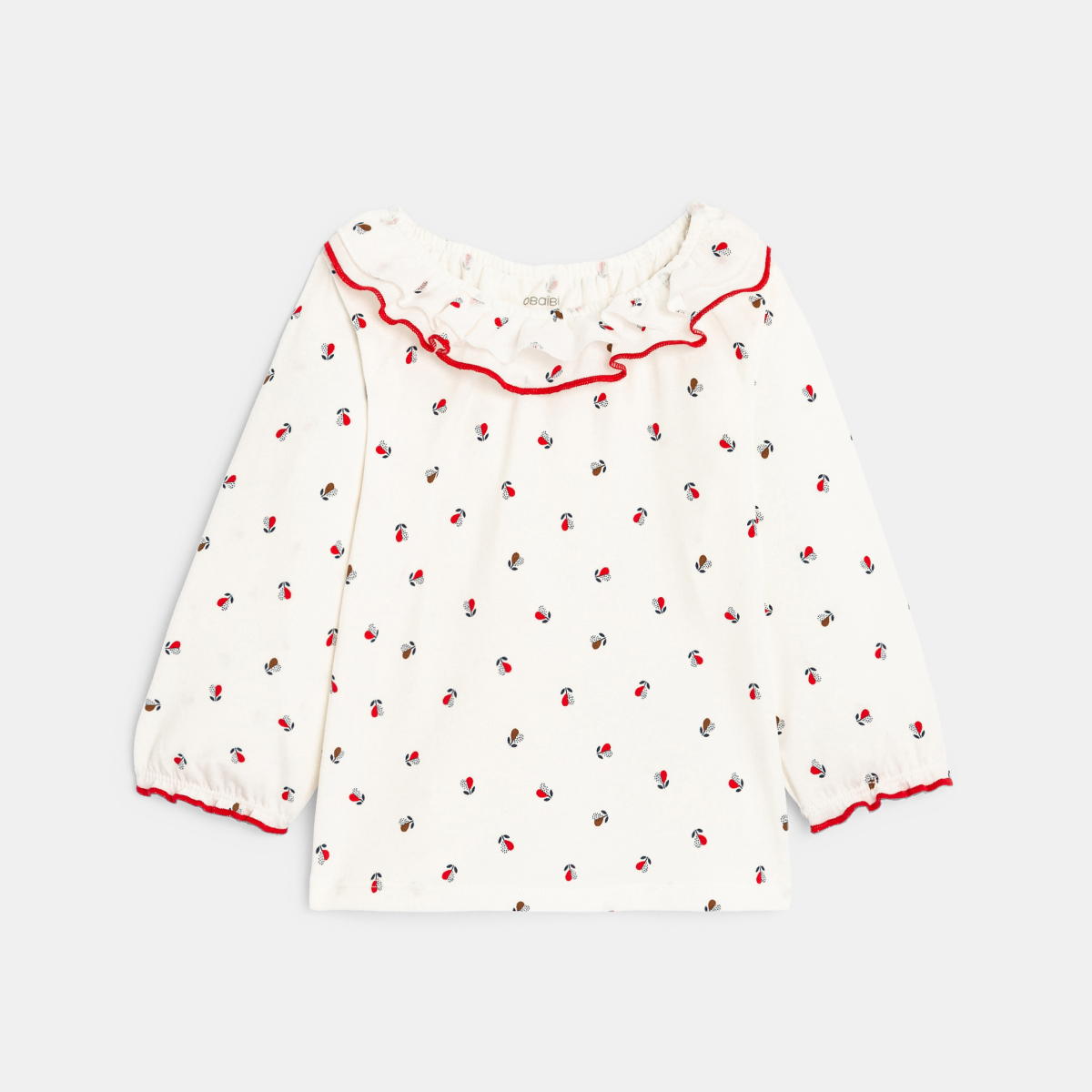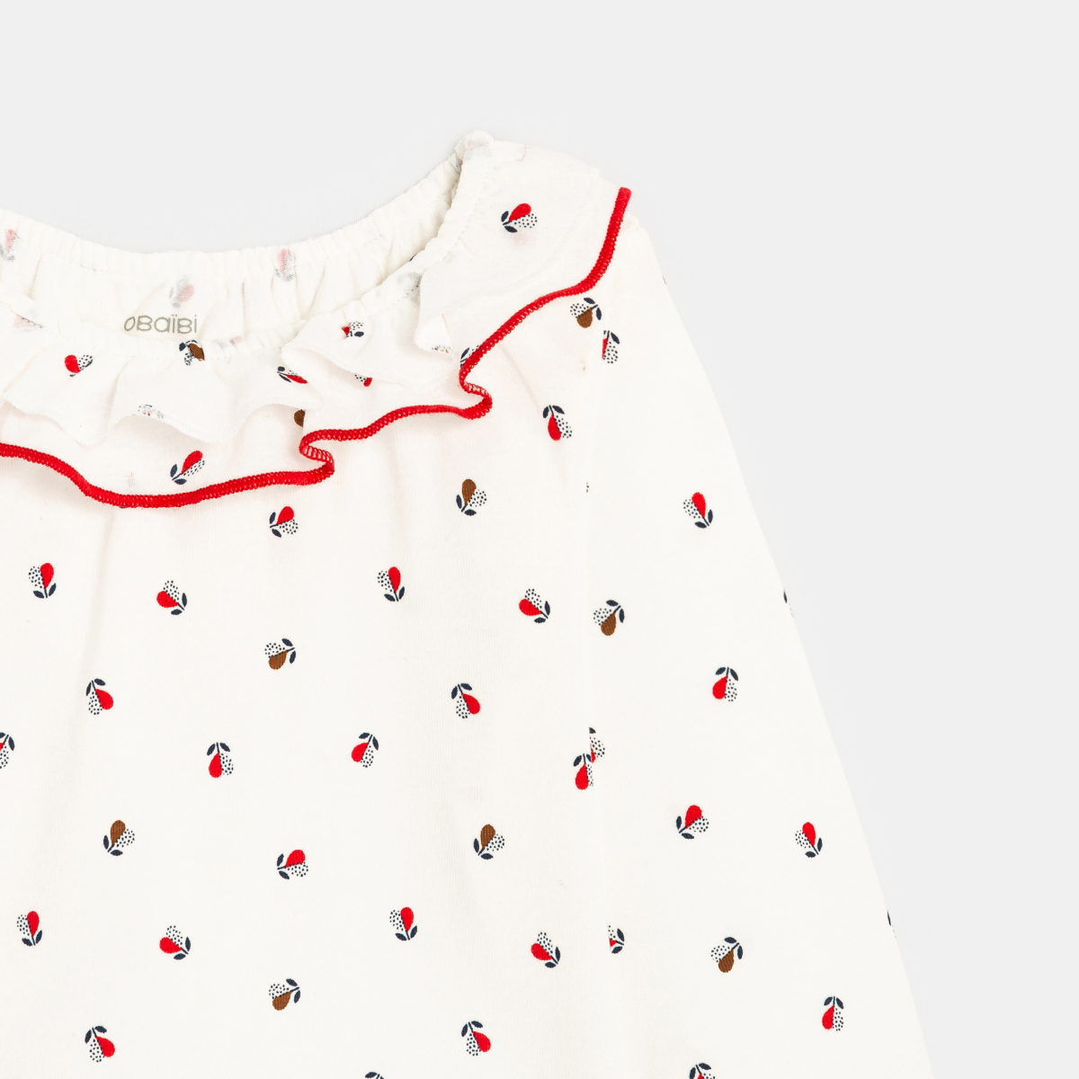 تيشيرت بناتي أحمر بياقة مكشكشة