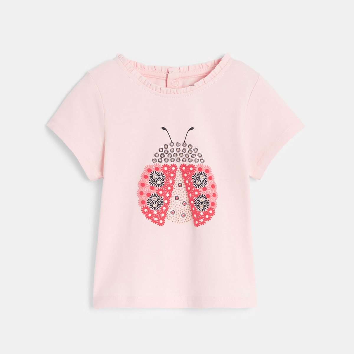 تيشيرت مزين برسمة خنفساء ناتئة باللون الوردي للفتيات الصغيرات