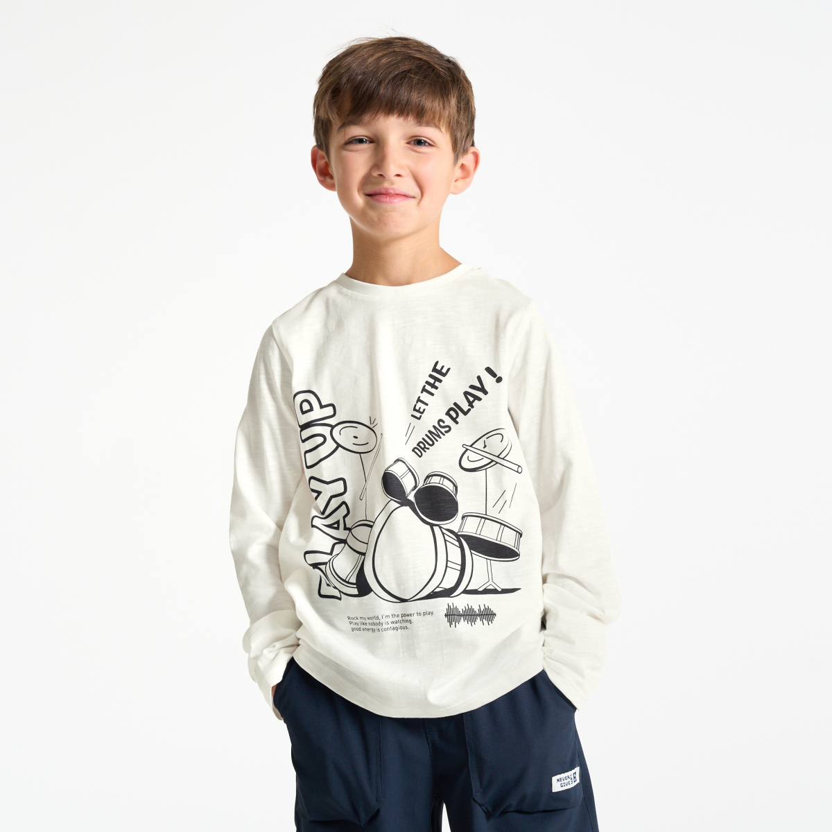 وصفي إلى جميع الأولاد الذين يستهويهم الروك، انتباه! مع هذا التيشيرت ذو الأكمام الطويلة، ستكون على موعد مع الحفلات الموسيقية في كل يوم من أيام السنة! جيرسي ناعم. قصّة مستقيمة. نقوش متناسقة مطبوعة من الأمام والخلف. ياقة مستديرة. حاشية مستقيمة. خياطة بنفس اللون.