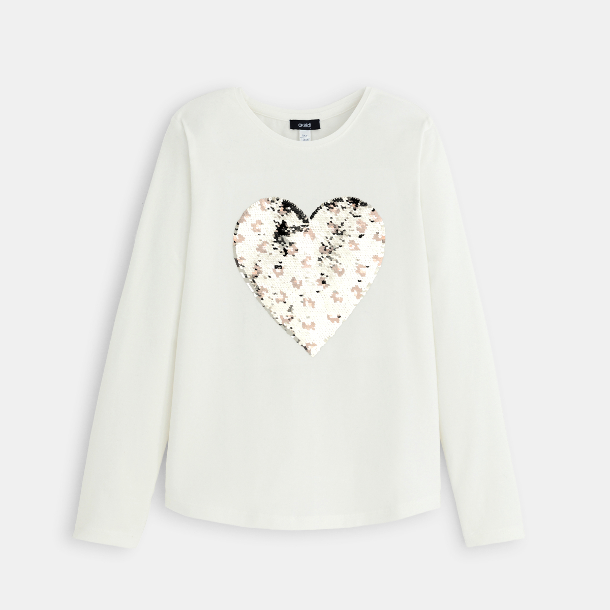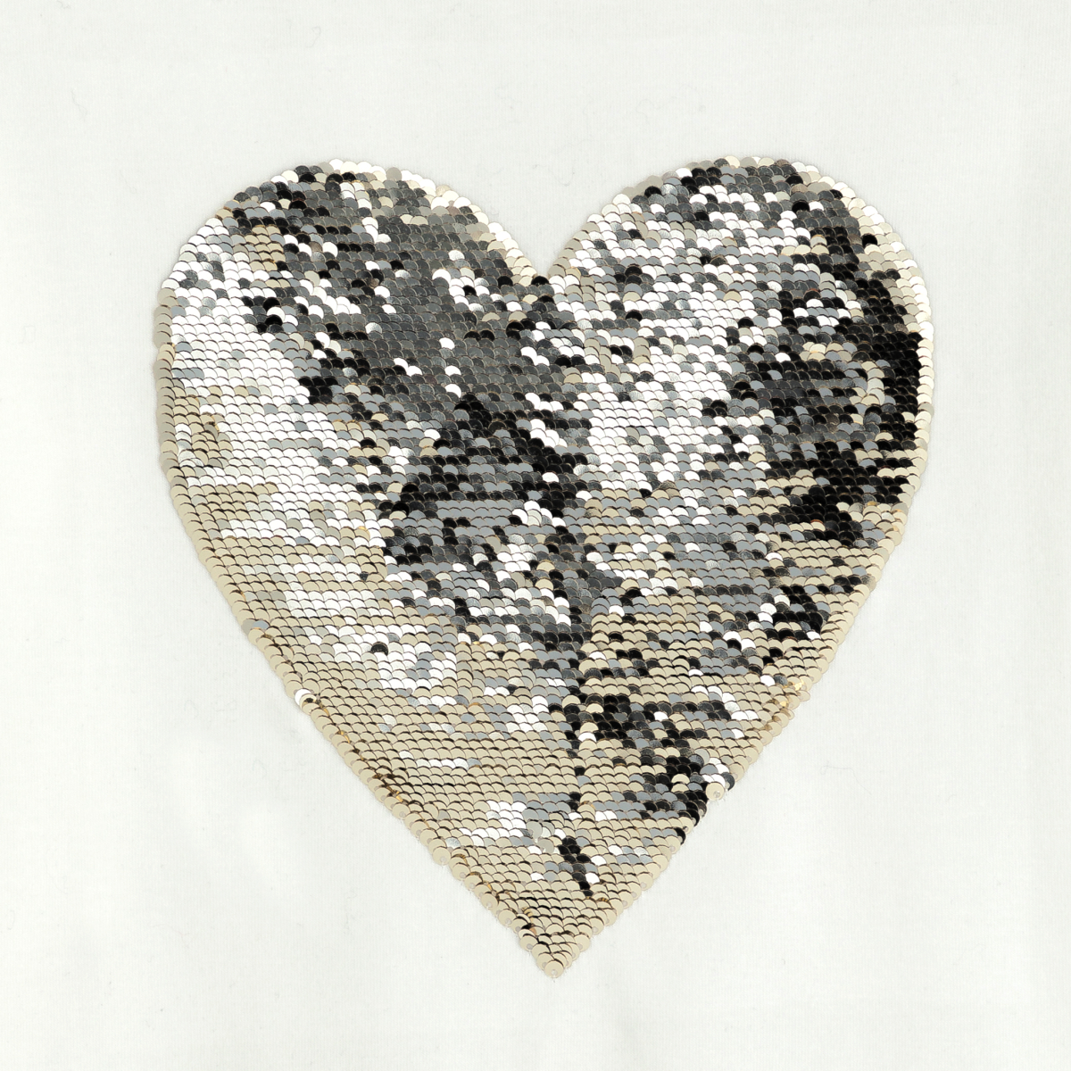 تيشيرت مع رسمة قلب مطرز بالترتر السحري باللون الأبيض للفتيات