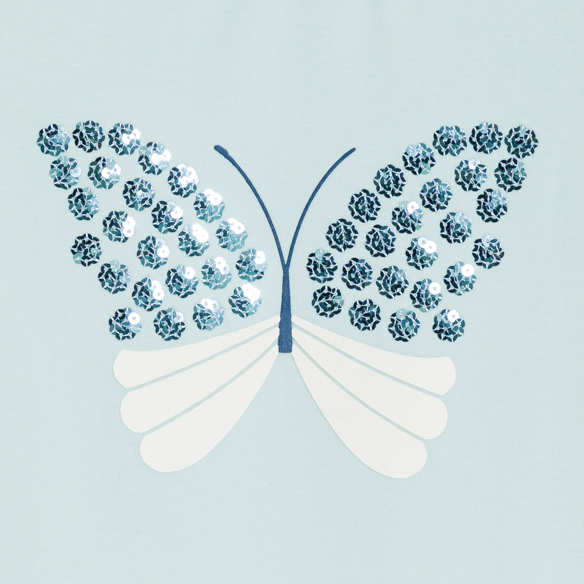 تيشيرت مزين بفراشة مطرزة بالترتر باللون الأزرق للفتيات