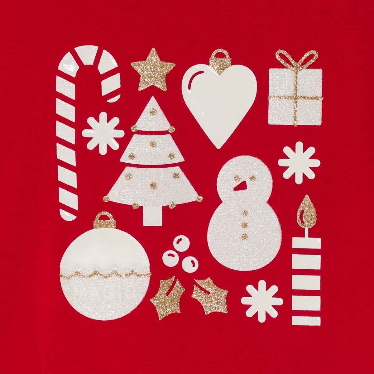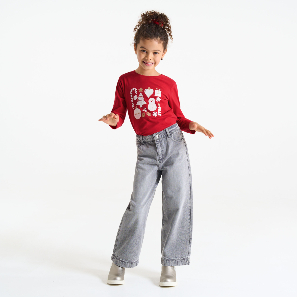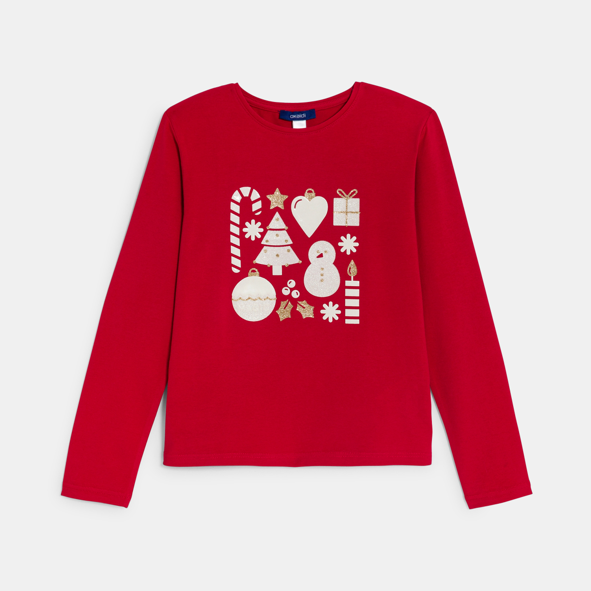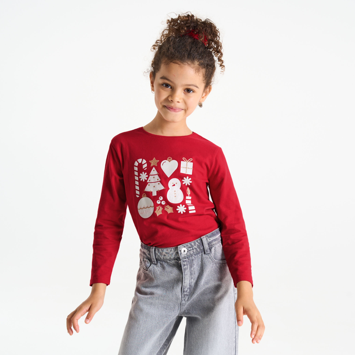 تيشيرت بنمط عيد الميلاد باللون الأحمر للفتيات