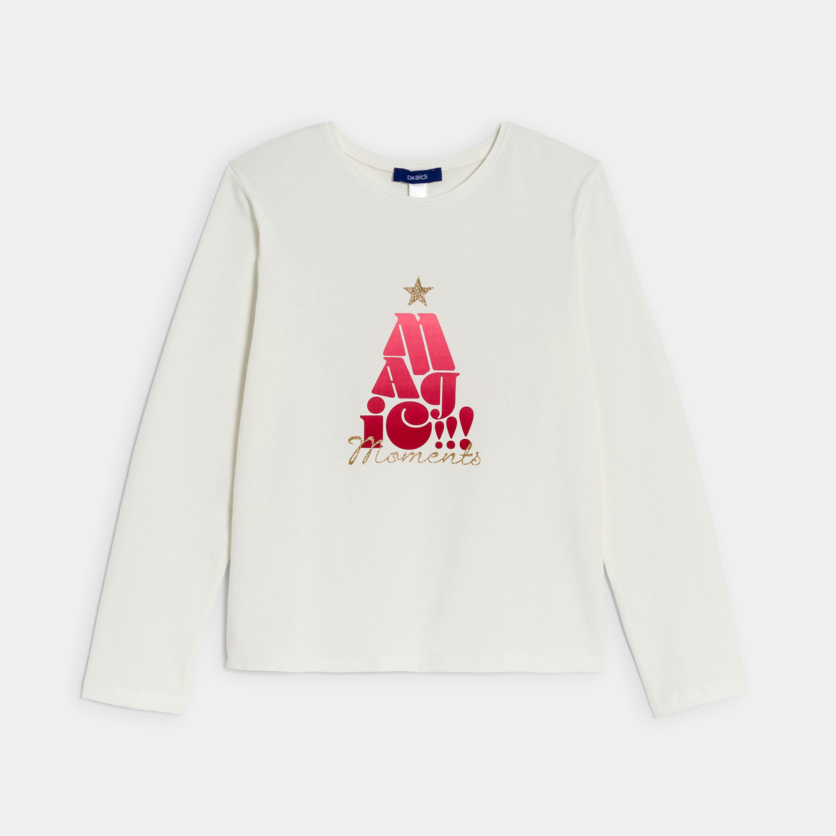 تيشيرت بنمط عيد الميلاد باللون الأبيض للفتيات
