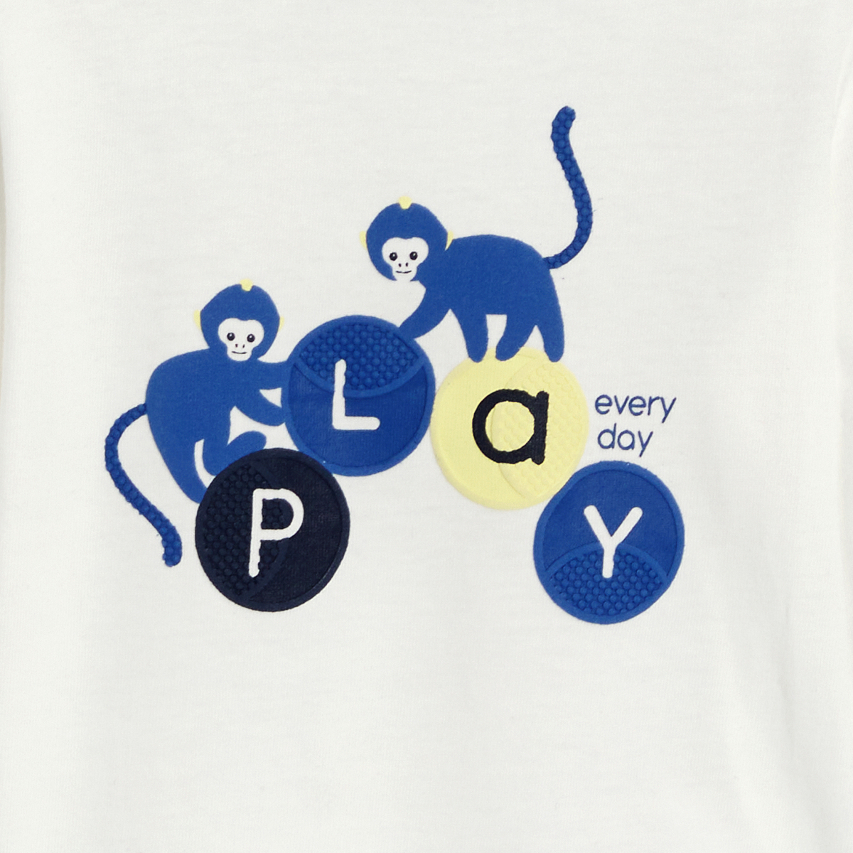 تيشيرت بأكمام طويلة برسوم حيوانات باللون الأبيض للأطفال الصغار