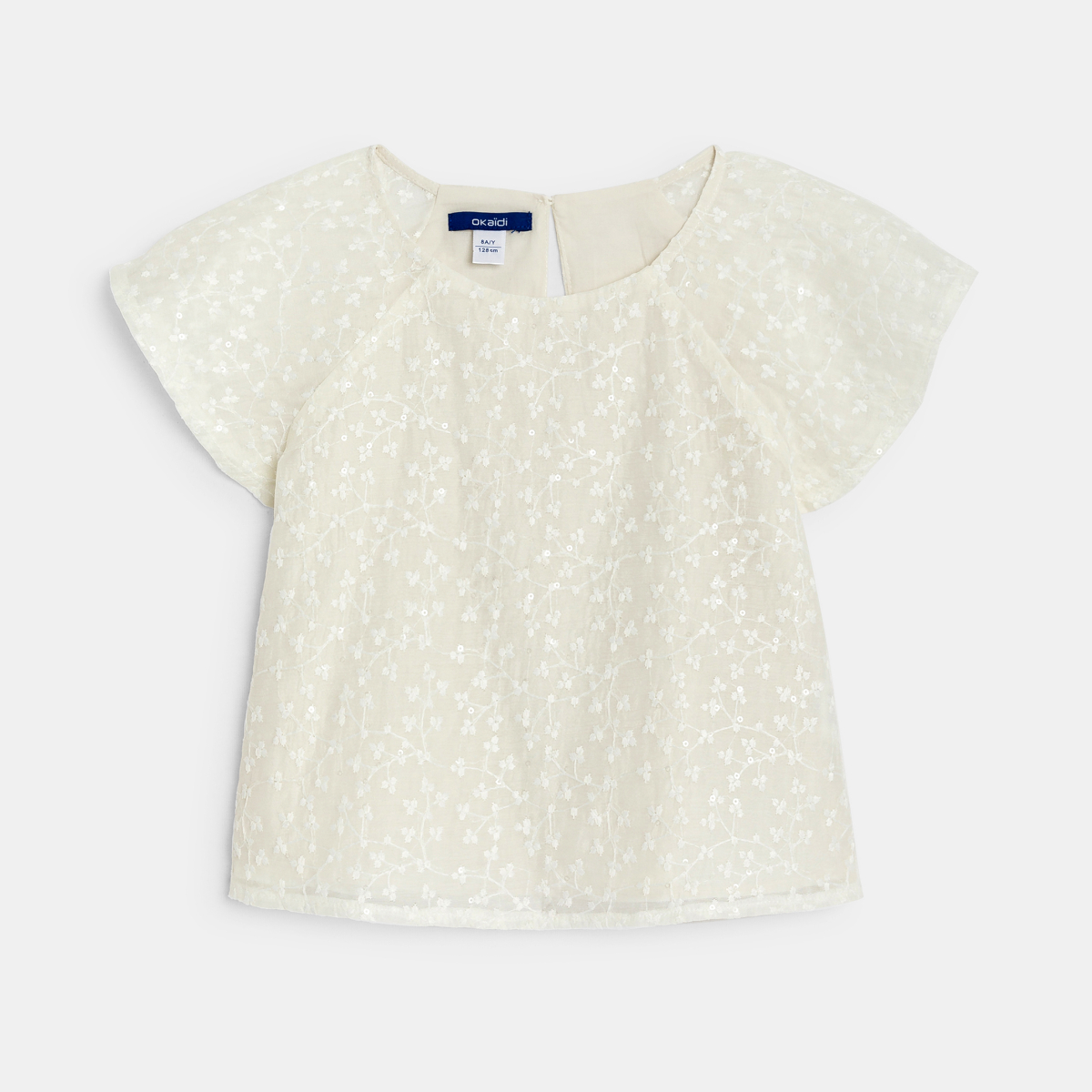 وصفي تُزين هذه البلوزة ذات الأكمام القصيرة بالورود والترتر. نحن نتخيلها مع بنطلون جينز أو إطلالة بيضاء بالكامل. ملاحظة: القصة على شكل دمعة عند مؤخرة العنق تجعل من السهل ارتداءها. قصة واسعة من الأسفل قليلًا. ياقة مدورة. أكمام بتقويرة رغلان. أكمام فراشة. الحافة السفلية مستديرة قليلاً. لمسات نهائية من نسيج بيكيه.