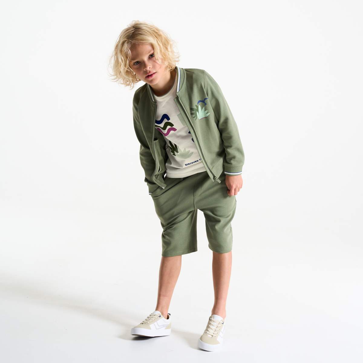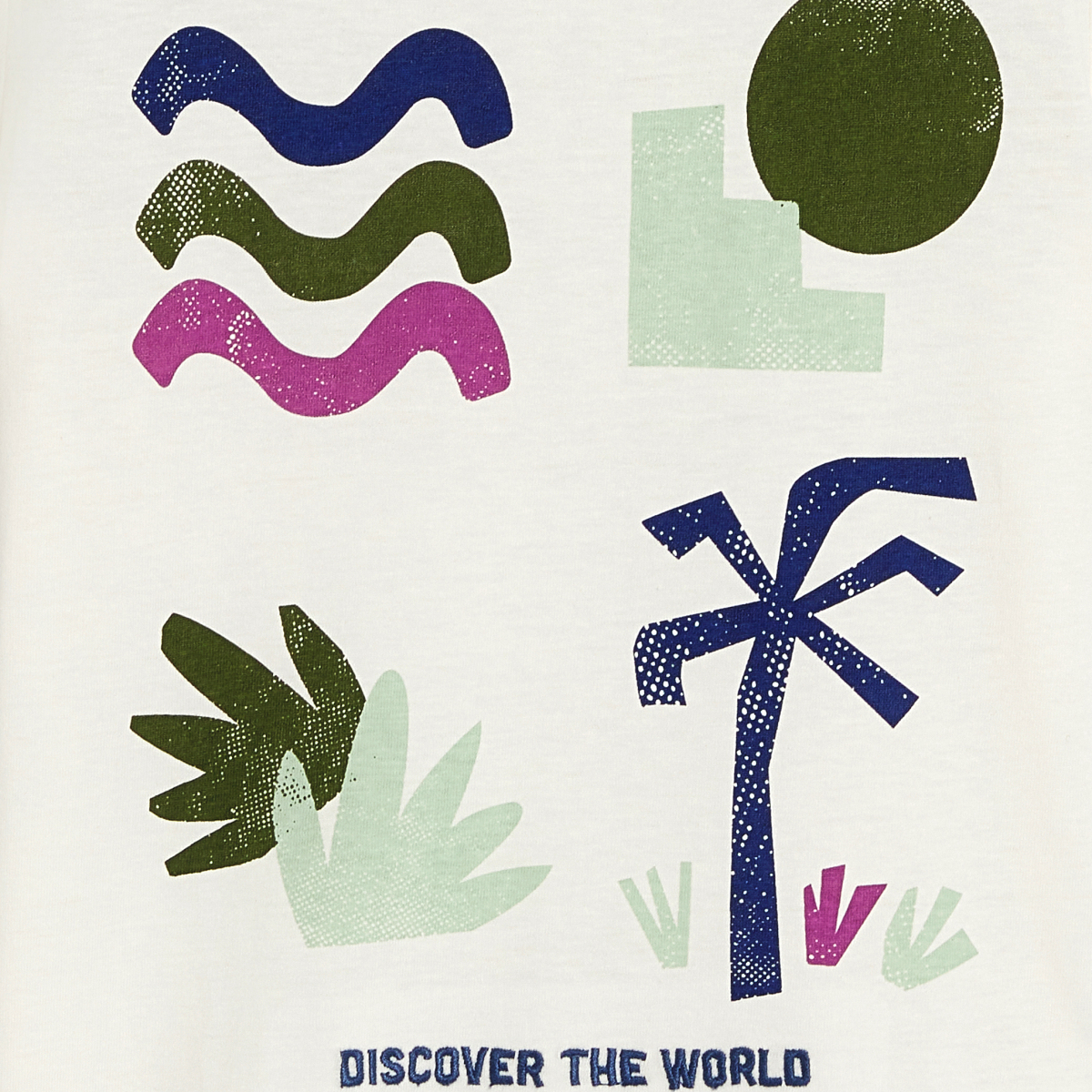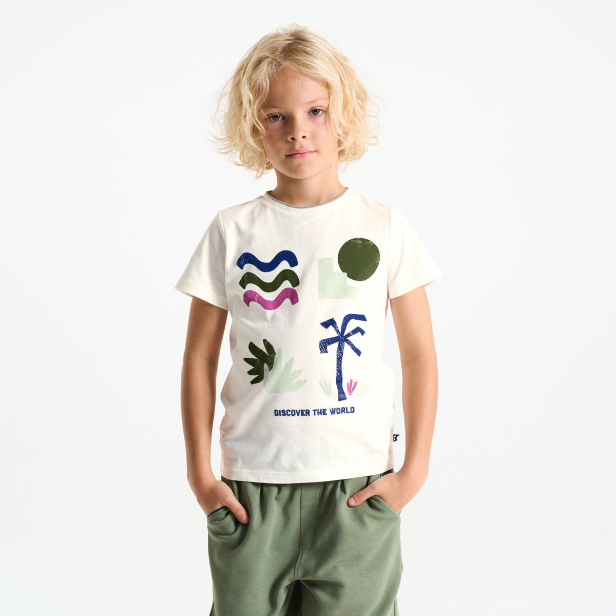 للعطلات. الصيف. الشمس. للطبيعة. مع هذا التي شيرت ونقوشه الأربعة المطبوعة، تجده مناسبًا للأولاد على مدار السنة! قماش جيرسي من القطن الناعم. نقش مطبوع في الأمام والظهر سادة. قصّة مستقيمة. ياقة مستديرة. أكمام قصيرة، الحاشية السفلية مستقيمة. خياطة من اللون ذاته.