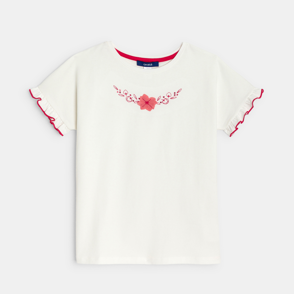 كما هو الحال مع هذا التيشيرت بأكمام قصيرة، اختر الزهور مرارًا وتكرارًا: فهي جميلة وخالدة ورومانسية! قماش جيرسي من القطن الناعم. قصّة مستقيمة. ياقة مستديرة. تطريز وزهرة مقصوصة ومضلعة من الأمام. أكمام قصيرة وحواف مكشكشة وخياطة بوردون بلون مغاير. الحافة السفلية مستقيمة.