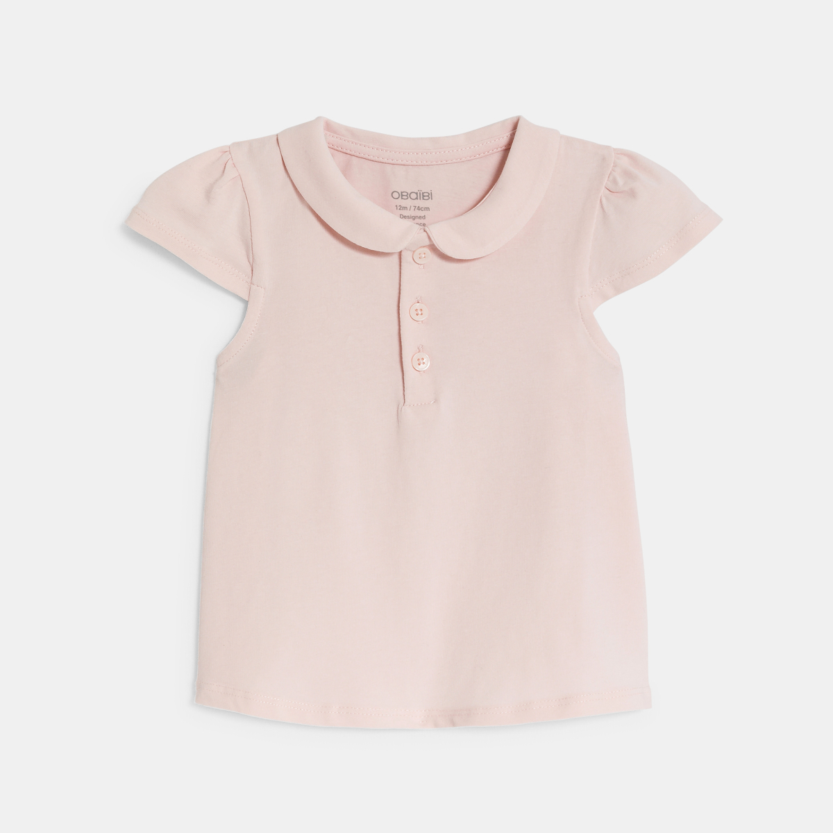 قميص بولو من القطن بياقة مستديرة، باللون الوردي للفتيات الصغيرات.