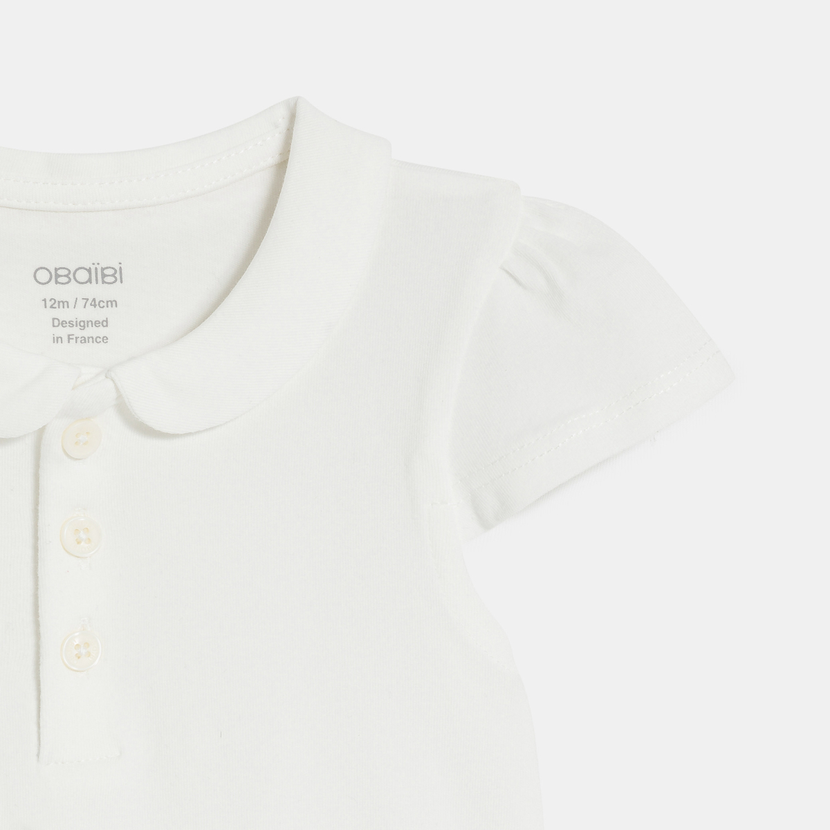 قميص بولو من القطن بياقة مستديرة، باللون الأبيض للفتيات الصغيرات.