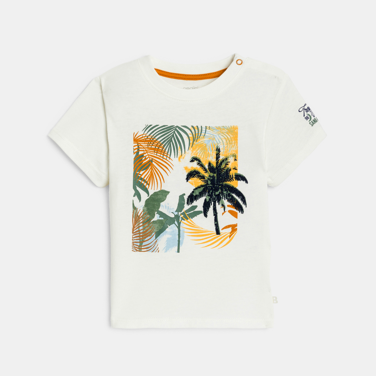 تي شيرت أبيض مطبوع عليه أشجار نخيل للولد الرضيع