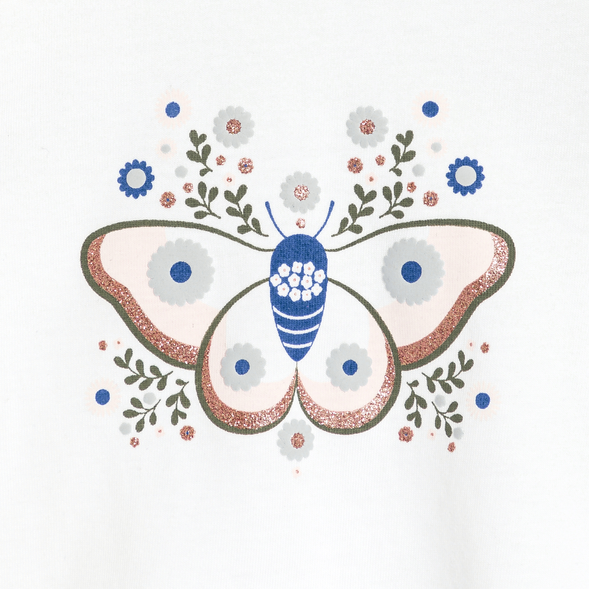 تيشيرت مزين برسمة فراشة ناتئة، باللون الأزرق للفتيات الصغيرات
