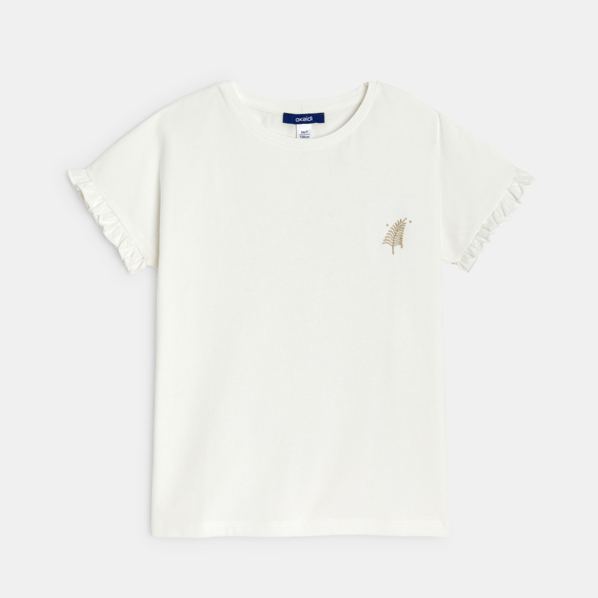 تيشيرت بأكمام قصيرة مزين برسوم مطرزة، باللون الأبيض للفتيات