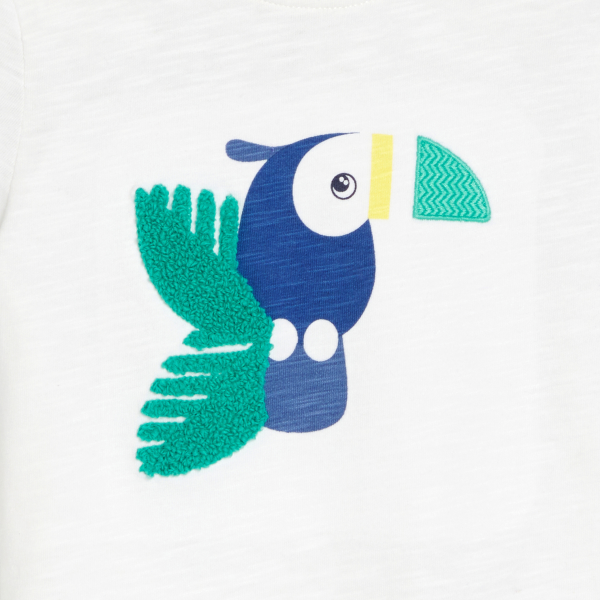 تيشيرت مزين برسمة طائر، باللون الأبيض للأطفال الرضع.