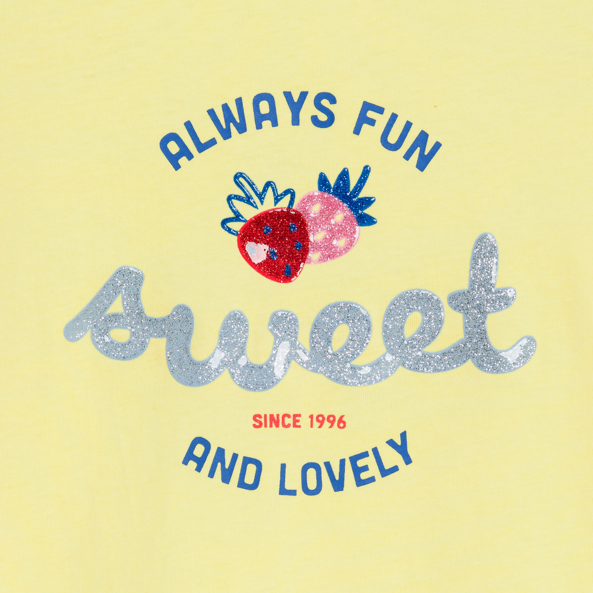 تيشيرت بطبعة عبارة من الترتر، باللون الأصفر للفتيات