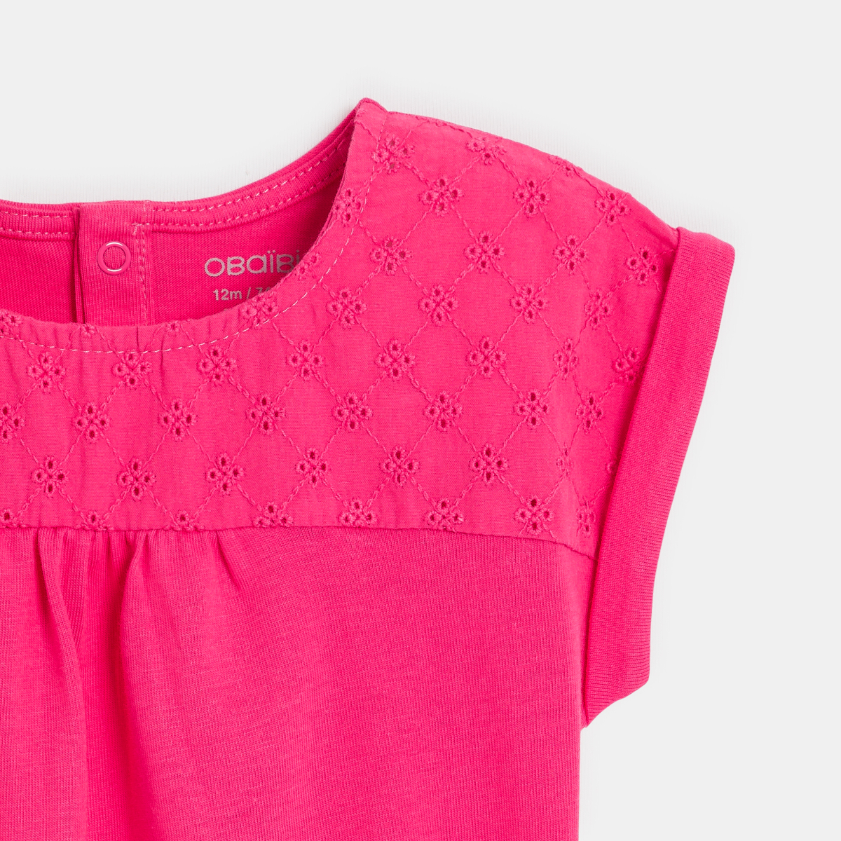 وصفي رقيقة ورومانسية هي التطريزات التي تزين هذا التيشيرت المصنوع من الجيرسي طيات على الصدر وأساور تزين الأكمام القصيرة، هذه هي التفاصيل التي تحبها الفتيات الصغيرات.