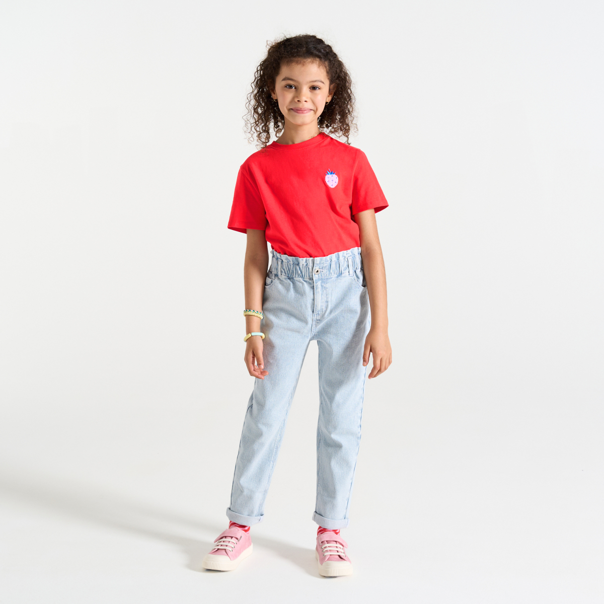 تيشيرت بأكمام قصيرة مزين برسوم الفراولة، باللون الأحمر للفتيات