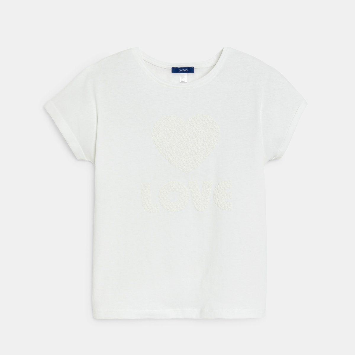 تيشيرت مزين بعبارة LOVE، باللون الأبيض للفتيات.
