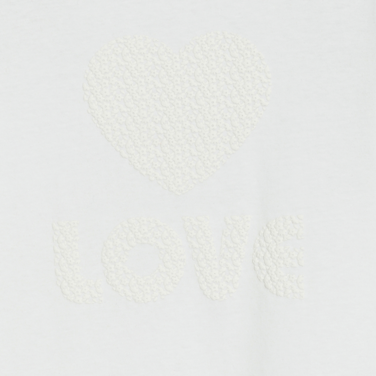يتحدث هذا التيشيرت، قصير الأكمام، عن الحب من خلال عبارة LOVE ورسمة القلب الكبيرة المطبوعة عليه بالحبر الناتئ بدرجة لون متباينة. تقع الفتيات في الحب من النظرة الأولى! من قماش الجيرسي الناعم. قصّة مستقيمة. ياقة مستديرة. أكمام قصيرة بها طية مخيطة. الحافة السفلية مستقيمة.