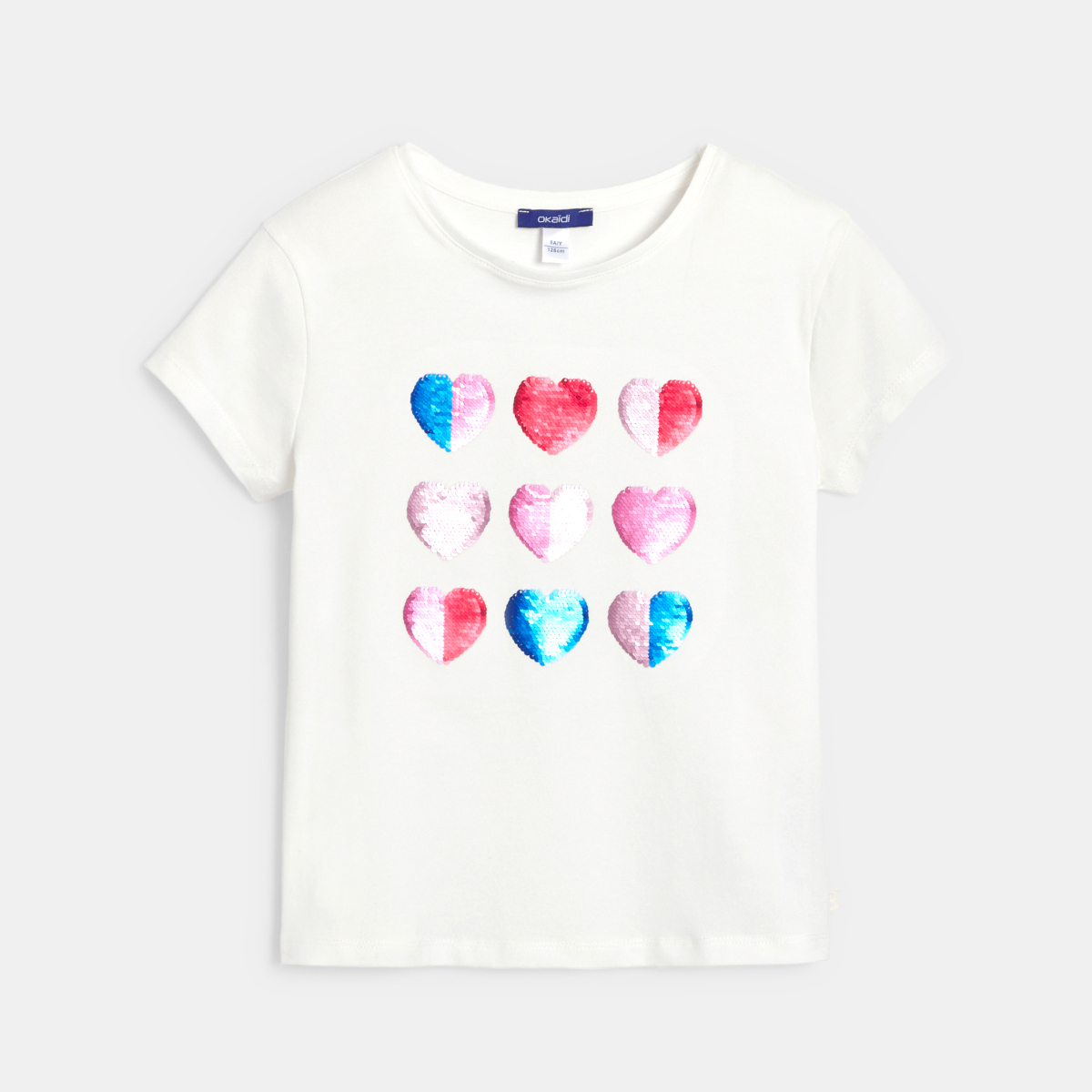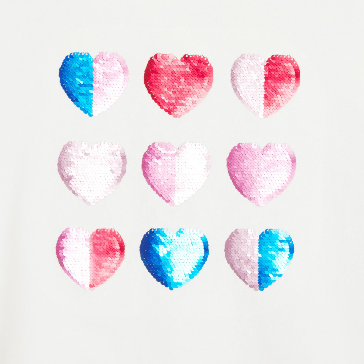 تيشيرت أبيض بأكمام قصيرة بترتر سحري للفتيات عليه رسومات قلوب