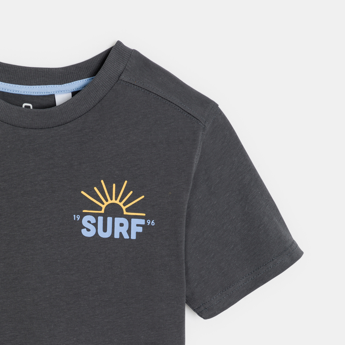 تيشيرت رمادي بأكمام قصيرة مطبوع عليه كلمات من الأمام والظهر للأولاد