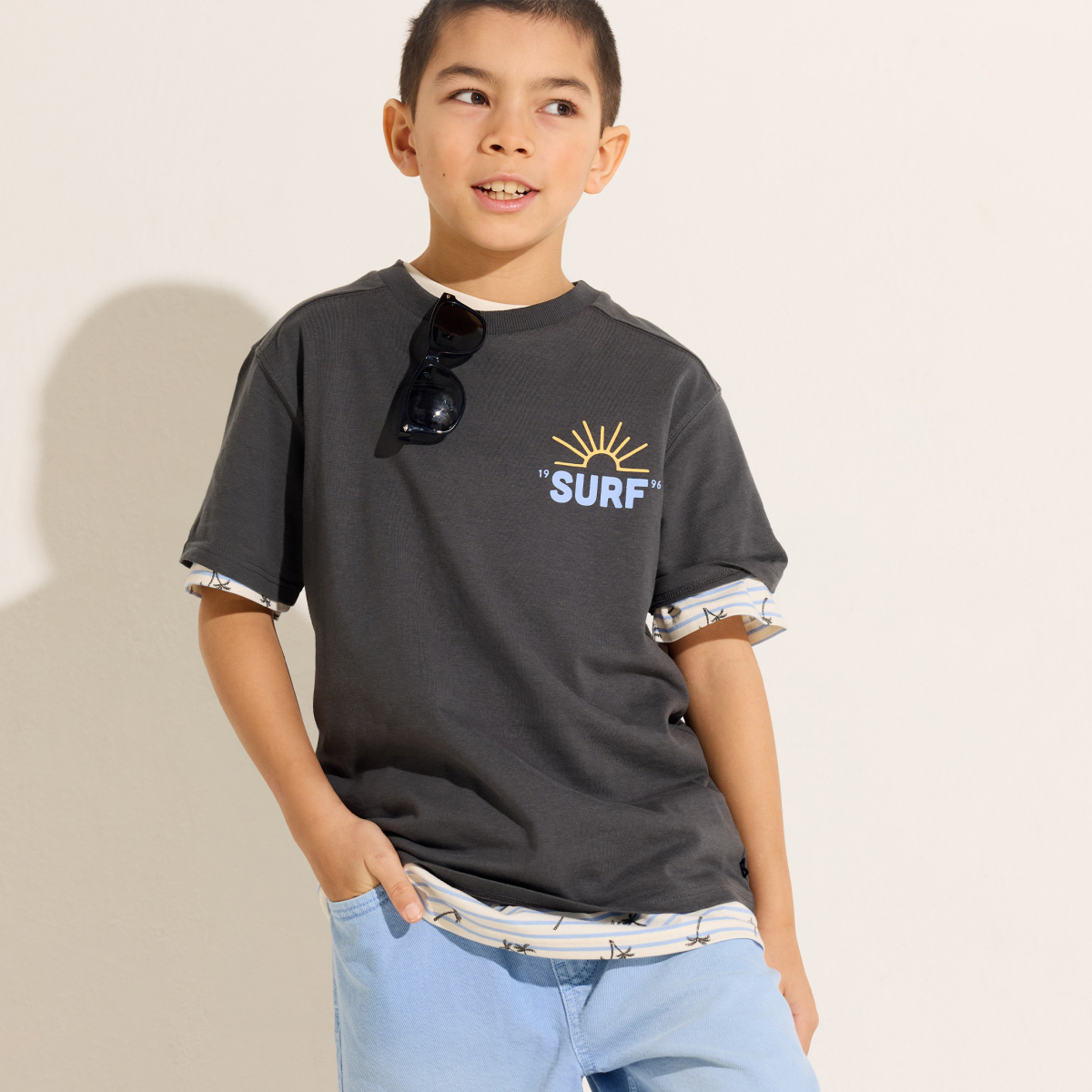 وصفي من المؤكد أن النقشة الصغيرة على الصدر والنقشة الكبيرة المطبوعة على الظهر ستجعل الأولاد يحبون هذا التيشيرت بأكمام قصيرة: لقد نجحت المهمة! من قماش الجيرسي الناعم. قصّة مستقيمة. ياقة مستديرة مضلعة. أكمام قصيرة. الحافة السفلية مستقيمة. خياطة من اللون ذاته.