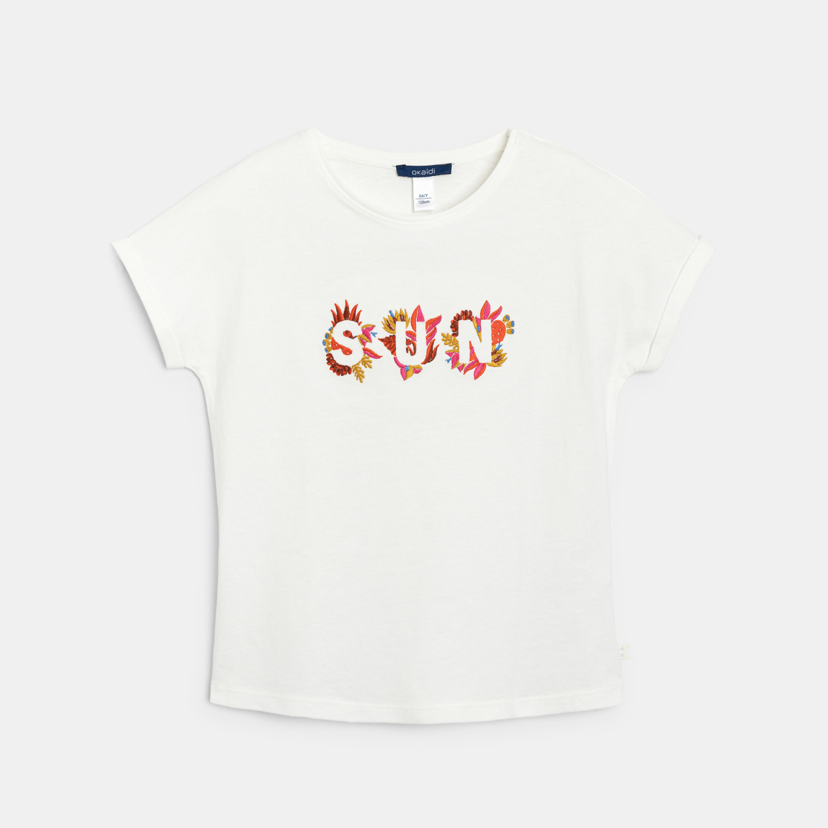 سنقوم بتكبير رسالة SUN المطرزة على المقدمة: إنها طريقة رائعة لإضفاء طابع شخصي على هذا التيشيرت الذي يناسب الطقس الدافئ! من قماش الجيرسي الناعم. قصّة مستقيمة. ياقة مستديرة. أكمام قصيرة. ظهر بلون سادة. الحافة السفلية مستقيمة. خياطة من اللون ذاته.