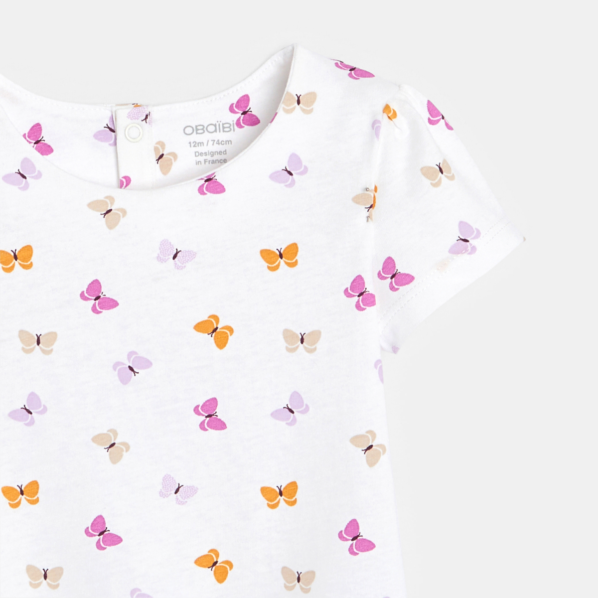 تيشيرت أبيض اللون، مرسوم عليه فراشات، للطفلة الصغيرة